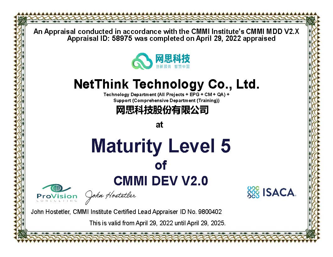 6月10日,爱游戏体育(中国)官方网站_AYX SPORTS 成功通过了全球软件领域最高级别CMMI V2.0 五级认证,证明爱游戏体育(中国)官方网站_AYX SPORTS 在软件开发领域的持续投入和技术实力再次获得该国际权威机构的高度认可。CMMI全称为Capability Maturity Model Integration,即能力成熟度模型集成,是国际上用于评价软件企业能力成熟度和过程规范性的一项重要标准。CMMI共设5个级别,从1